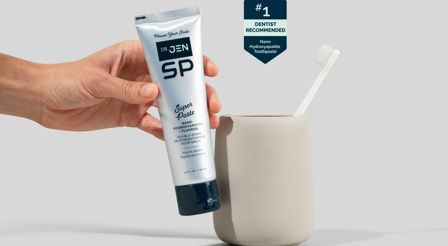 Remineralize and strengthen enamel with 10% Premium nHAp, 0.22% Fluoride and Xylitol in Dr. Jen's Super Paste.