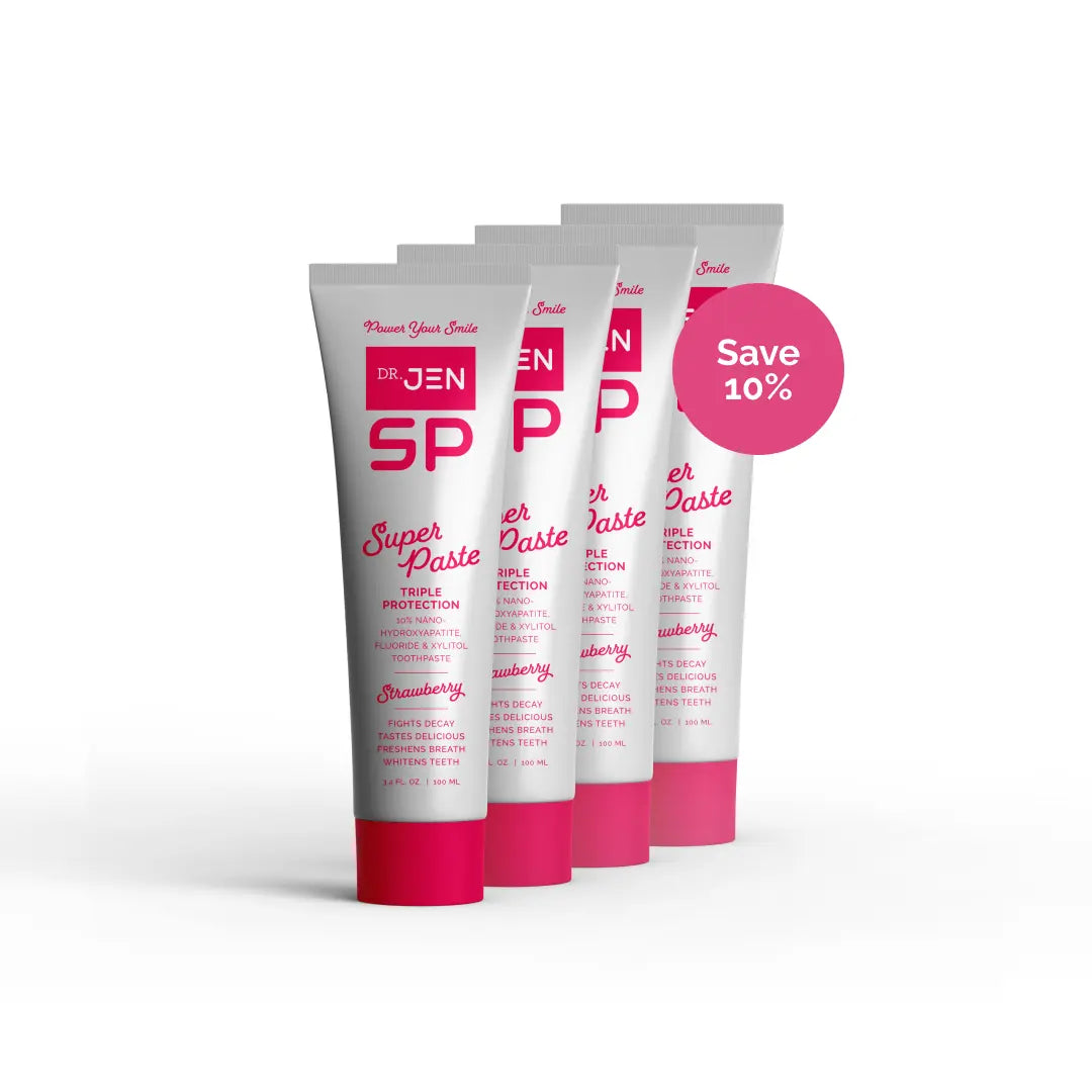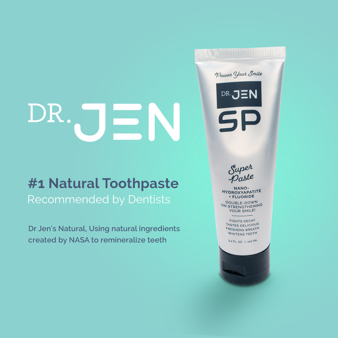 Dr. Jen Super Paste combines super ingredients 10% Nano-Hydroxyapatite and Fluoride which is clinically proven to outperform fluoride alone toothpaste.