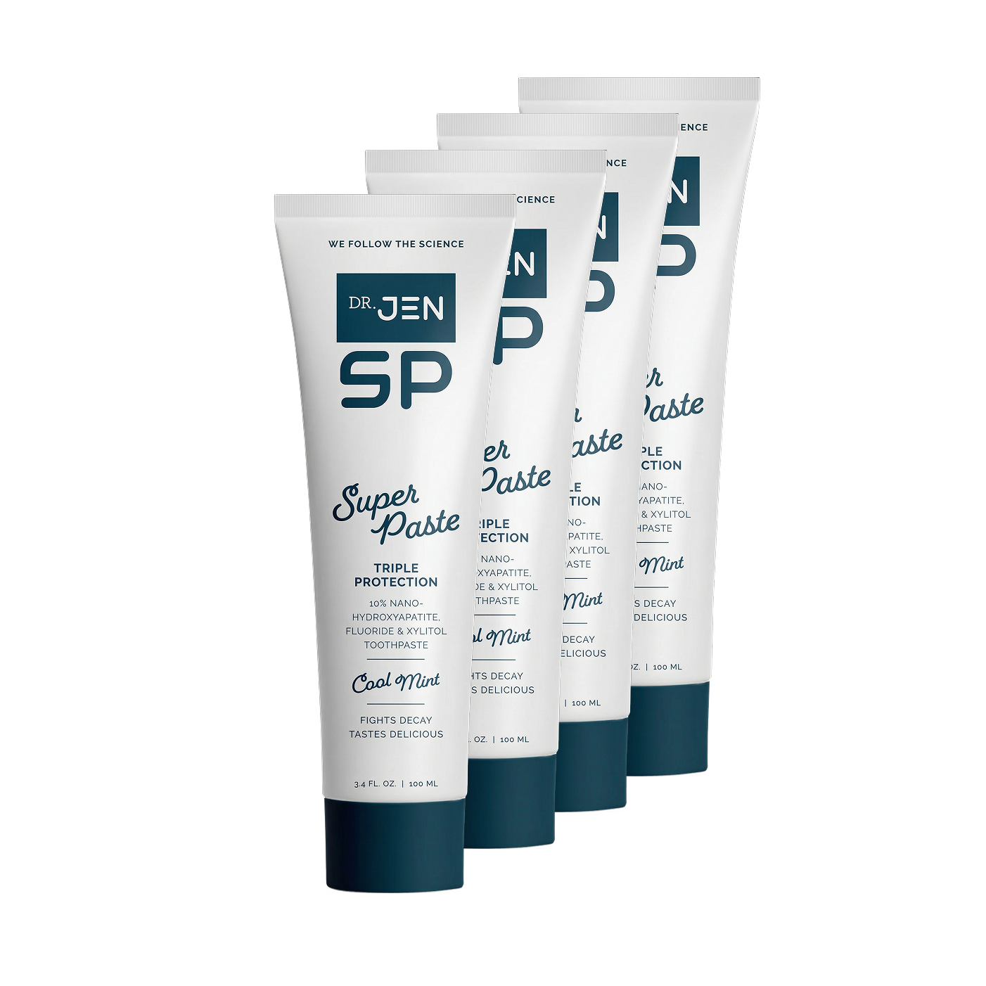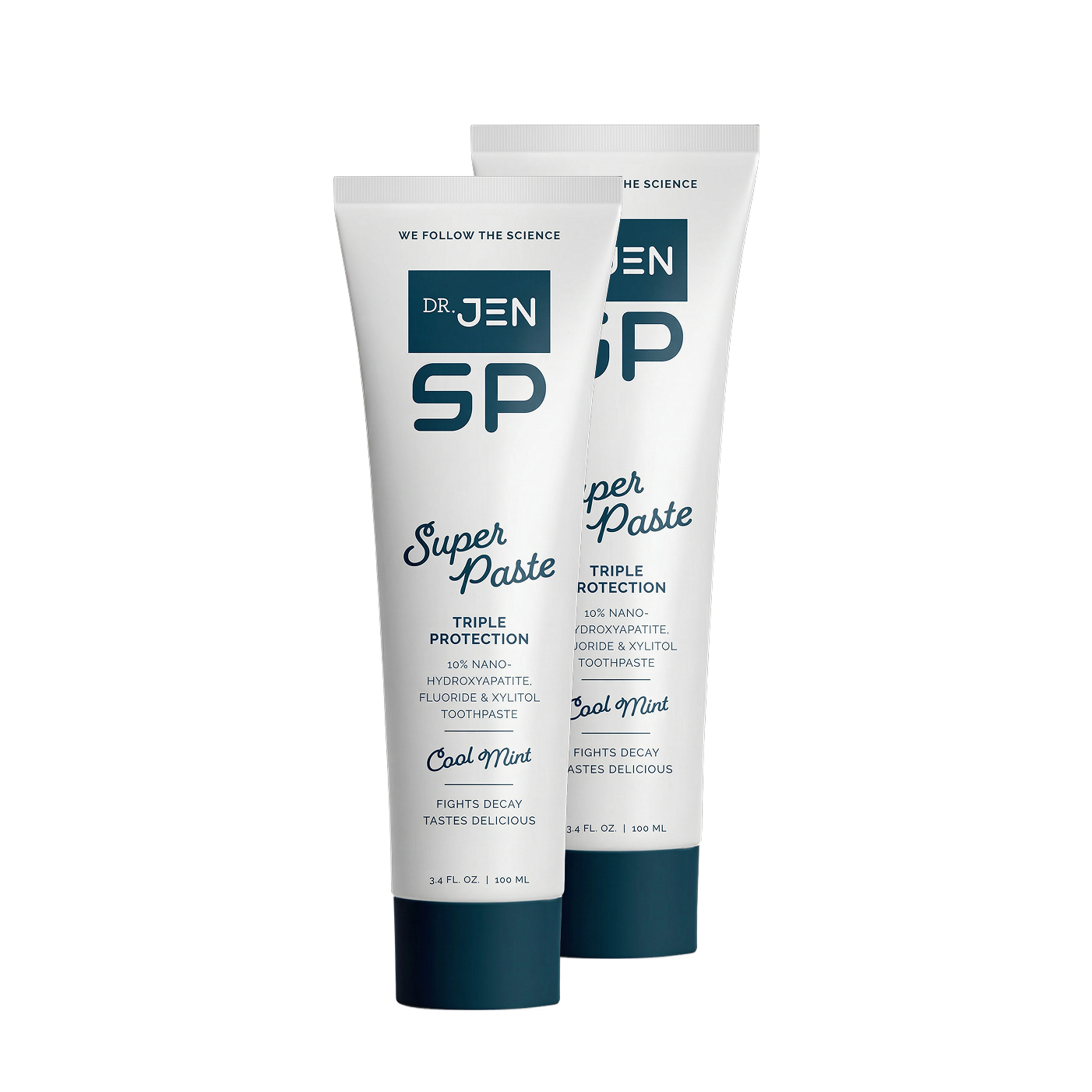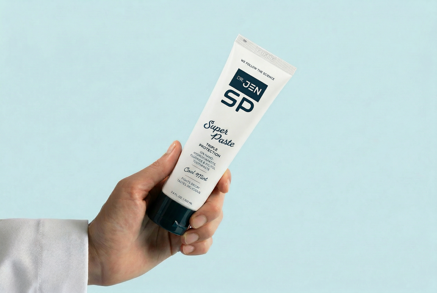 Dr. Jen Super Paste combines super ingredients 10% Nano-Hydroxyapatite and Fluoride which is clinically proven to outperform fluoride alone toothpaste.