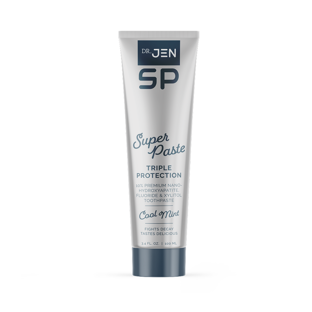 Dr. Jen’s Super Paste combines 10% nano-hydroxyapatite, 0.22% fluoride, and xylitol to deliver superior enamel strength, cavity protection, and complete oral health support—making it more effective than 5000ppm fluoride prescription toothpaste for patients with high caries risk.
